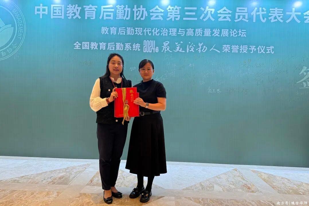 何思,中共党员,2007年本科毕业于华师经济与管理学院,现任华师后勤管理处物业管理服务中心综合部部长。她深耕学校后勤保障工作18年,从基层岗位开始一步步历练,把日常工作打造成鲜活生动的服务窗口,全心全意为师生提供优质后勤服务,在日常维修保障、水电保障、环境绿化等后勤工作中做出应有贡献,连续多年被评为后勤管理处优秀职工、学校工会优秀工作者、工会积极分子。2025年10月,在中国教育后勤协会第三次会员代表大会上,何思获评全国教育后勤系统“2024年度最美后勤人”,成为全国高校后勤领域60名、广东省3名获评个人之一。